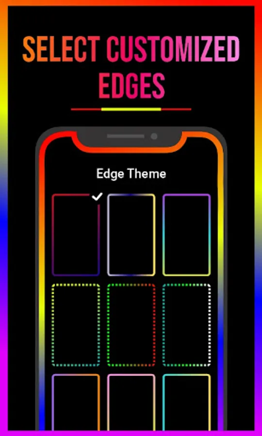 You can set Colorful Borderlight With your Photo as light wallpaper. This feature makes your phone screen more attractive by blinking your photo on the screen with LED edges. You can select any photo from your gallery and set it as edge light LED wallpaper.