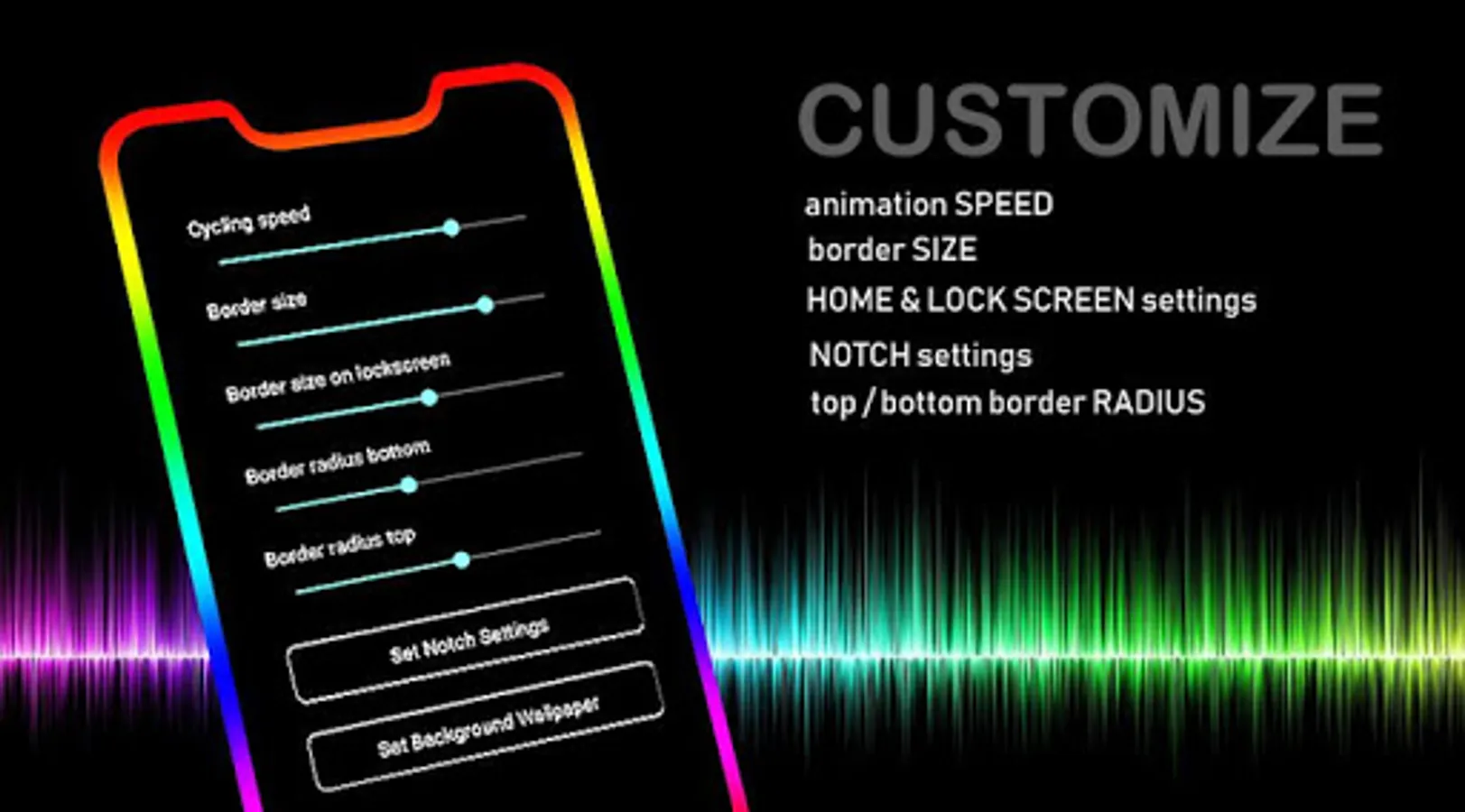 # Feature like to set Cycling speed, Border size, Border size on lock screen, Bottom side, Notch, Top side.