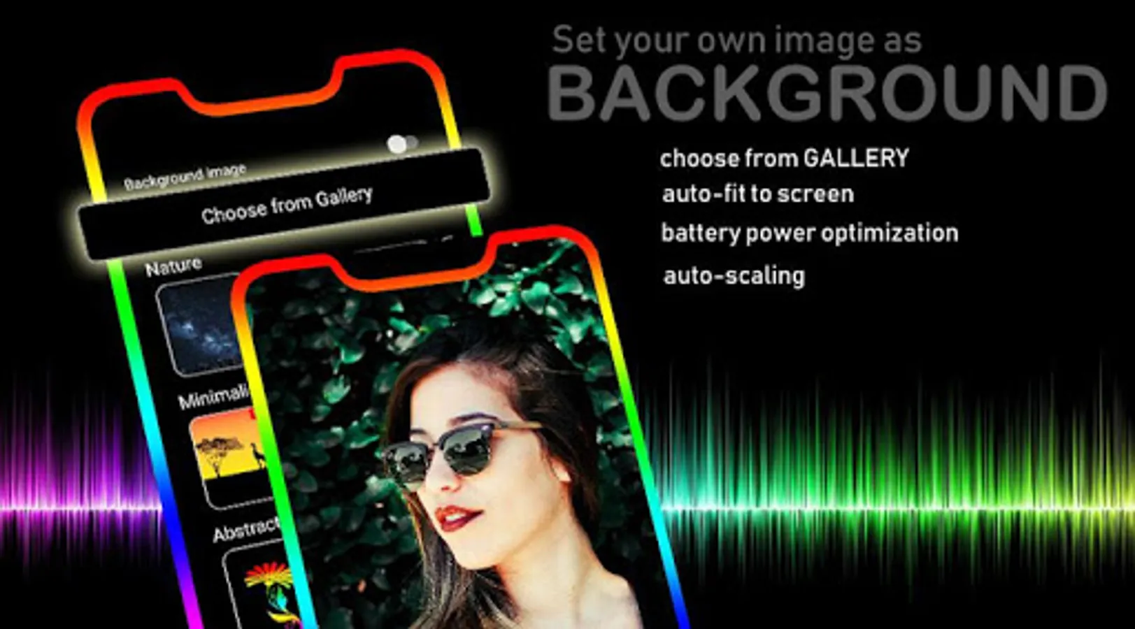 You can also set background wallpaper between the moving EDGE light, you can do it from Border light with HD wallpaper app. Just choose beautiful premium HD wallpapers from various images from all categories like Nature, Abstract, Live Wallpaper, Minimalism, Artistic, 4K, Effects. You can also set any wallpaper from your Gallery, photos folder between the moving light on the edges of your mobile phone. Set your photo, loved one’s photos at the centre of beautiful colourful border & give your phone at complete makeover.