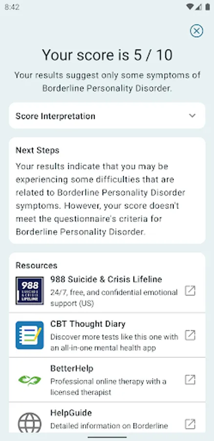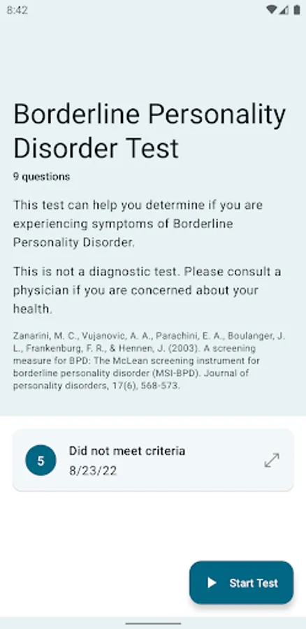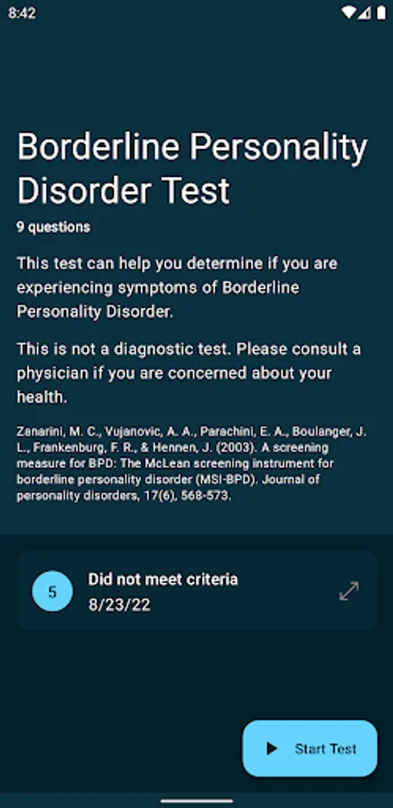 Disclaimer: This test is NOT a diagnostic test. A diagnosis can only be provided by a qualified healthcare professional. Please consult a physician or mental health professional if you are concerned about Borderline Personality Disorder.