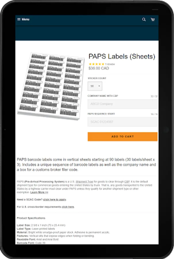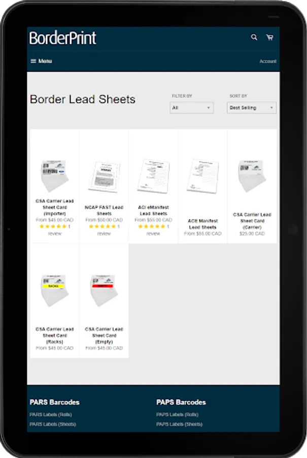 Order CBSA and CBP approved PARS and PAPS barcode labels, lead sheets, custom documents, and more. Delivered right to your door!