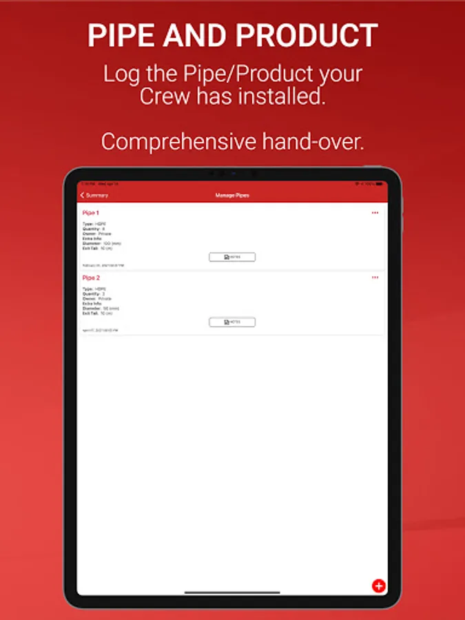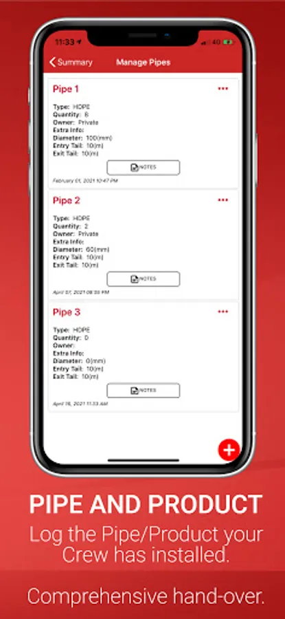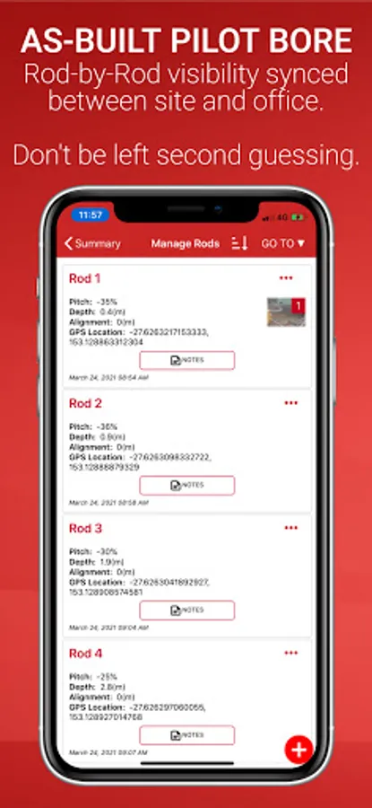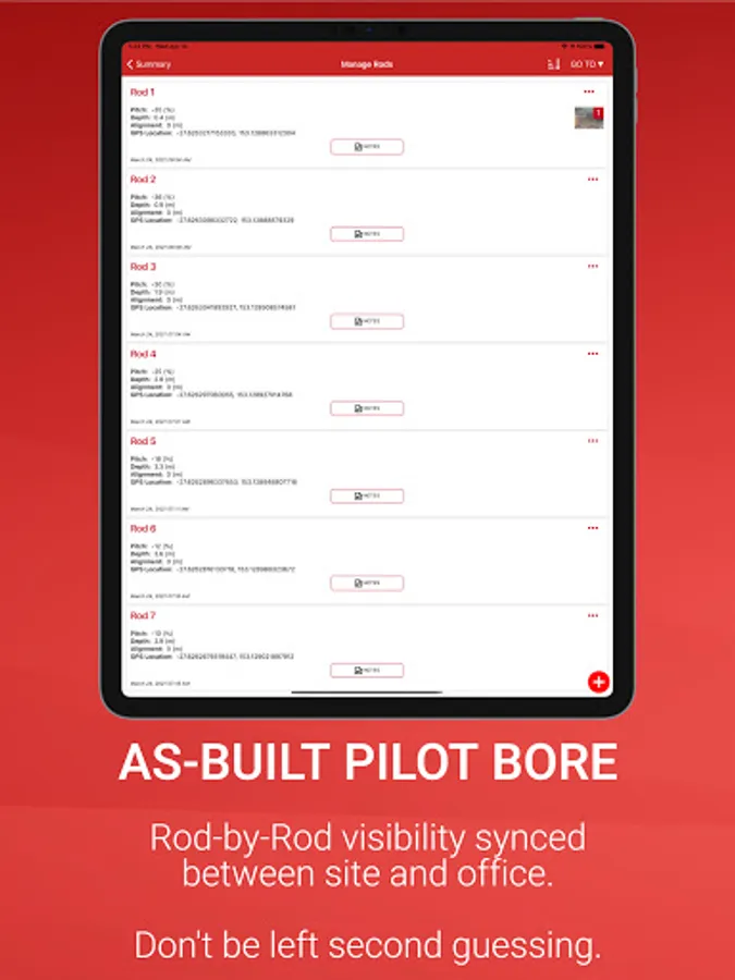 - Easily log the bore rod-by-rod, automatically record date and time. Enter notes for important info or events, capture photos, and record GPS locations.