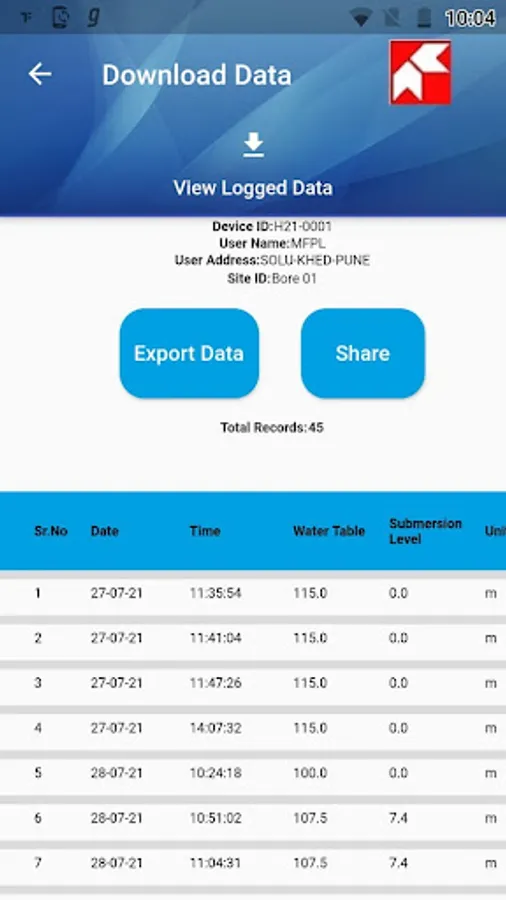 • BoreWell App is used to download water level data and share the same data to other users if required.