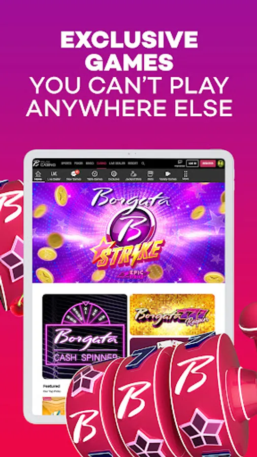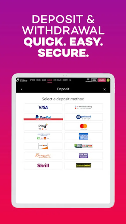 • Immersive and exciting Live Dealer blackjack, baccarat, and roulette games