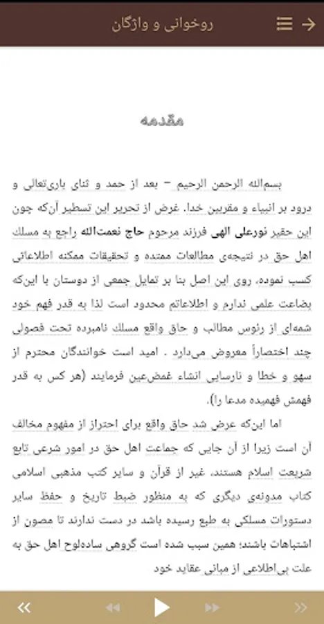 This app is intended to introduce and provide greater familiarity with “Borhan ol-Haqq” (Demonstration of the Truth, 1963), the first published work of Nur Ali Elahi (later Ostad Elahi, 1895-1974). This seminal book presents Ostad Elahi’s comprehensive and meticulous research on the origins, beliefs, principles, and tenets of the mystical order of the Ahl-e Haqq, which had never before been systematically compiled and codified. The supplemental articles and expositions by other researchers and scholars in the field provide essential contextual background and additional analyses of Ostad Elahi’s findings.