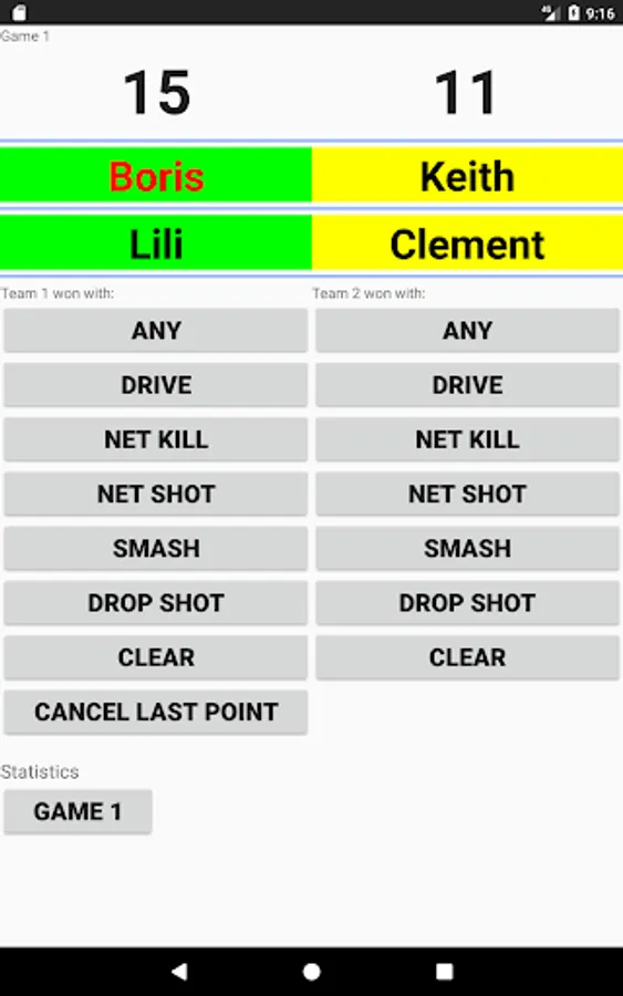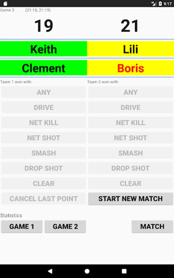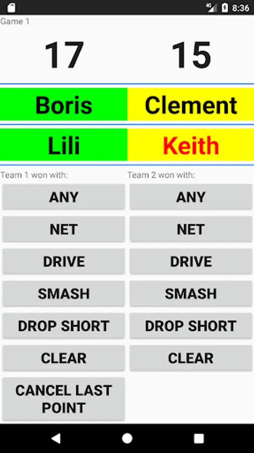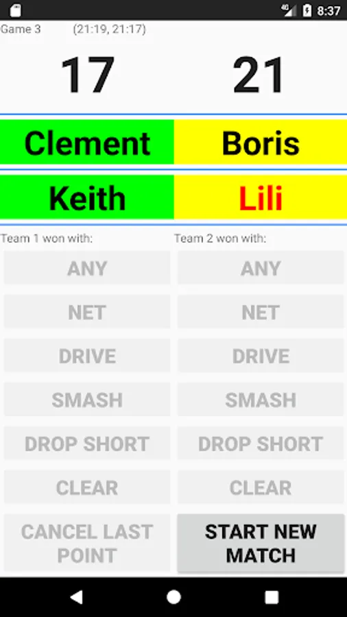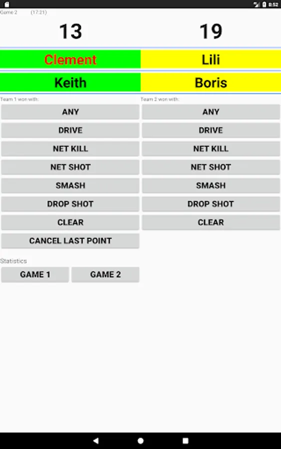 Application keeps badminton score and shows players positions on court for doubles and singles games.