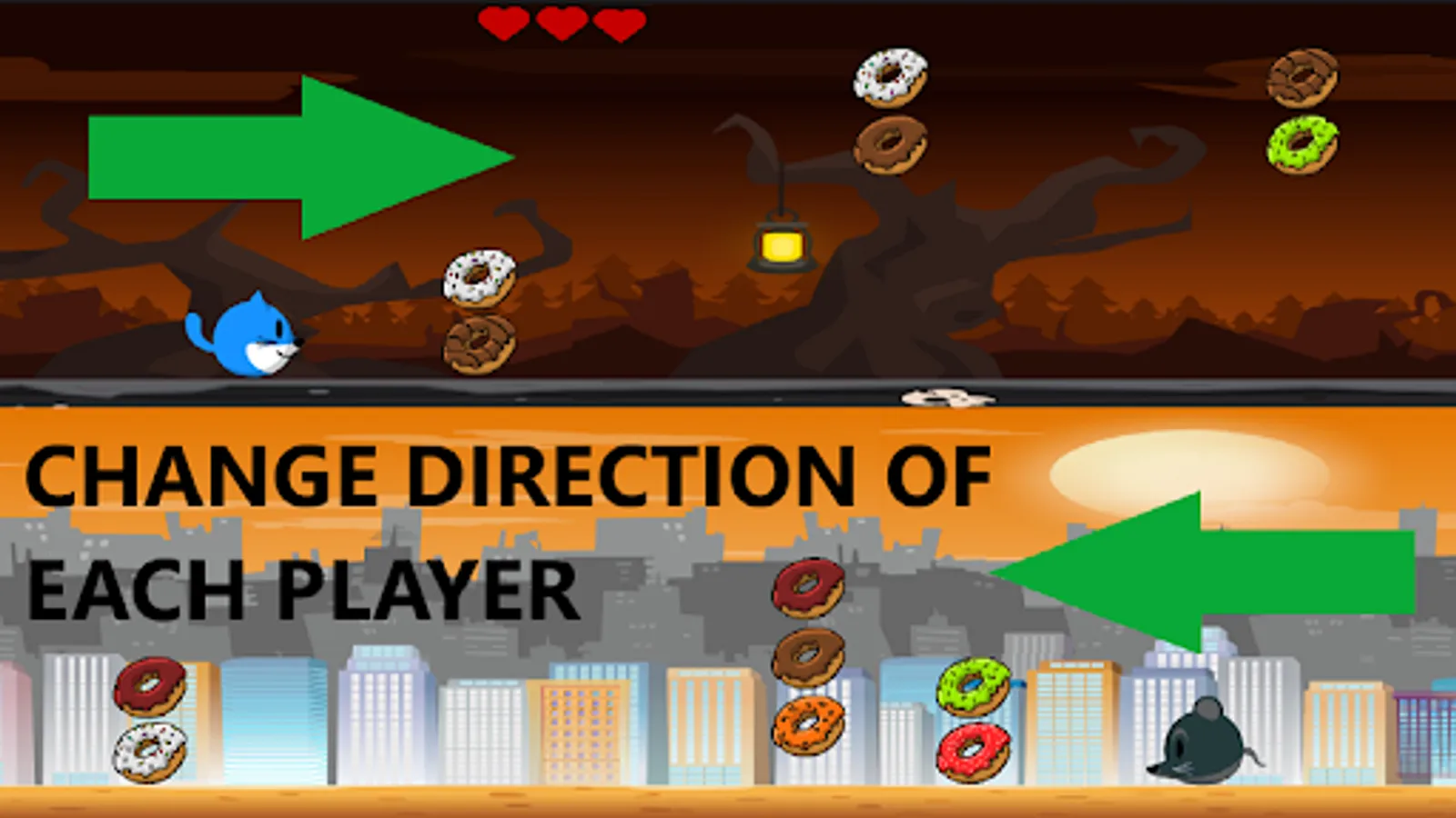 Control 2 players at the same time, with different obstacles in split-screen mode. And even in different directions! How far can you go? ðð ðð