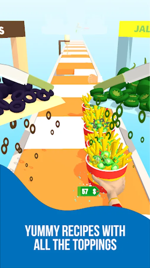 • A fun runner game with learning elements for kids on how loaded fries are made
