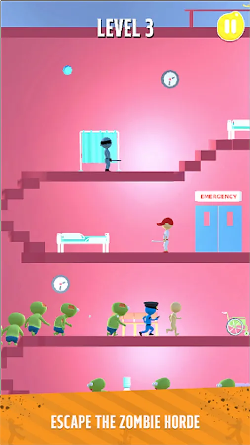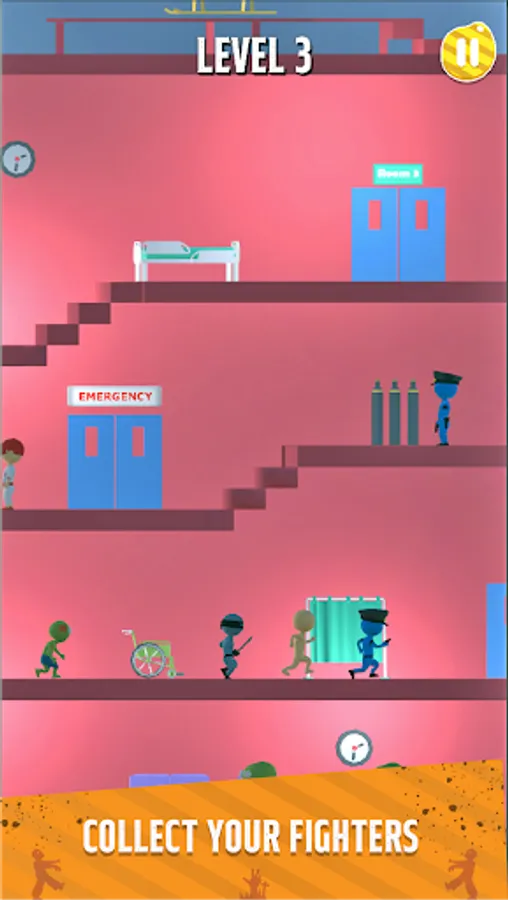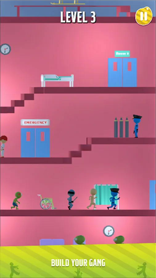 Run along, collect your gang members on the go and improve your chances of survival. Because that horde of brain eating zombies is not going to slow down or get weaker! Time is of the essence though! The longer you stay the stronger they get, maneuver around the vertical towers as soon as you can and escape away with the helicopter ride.