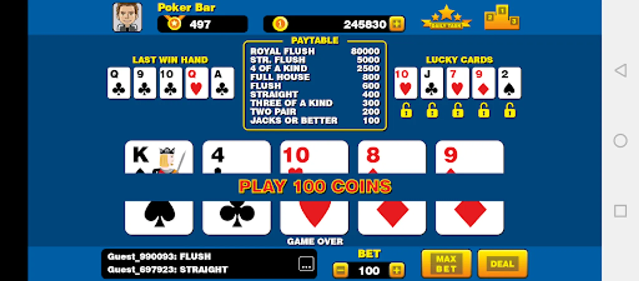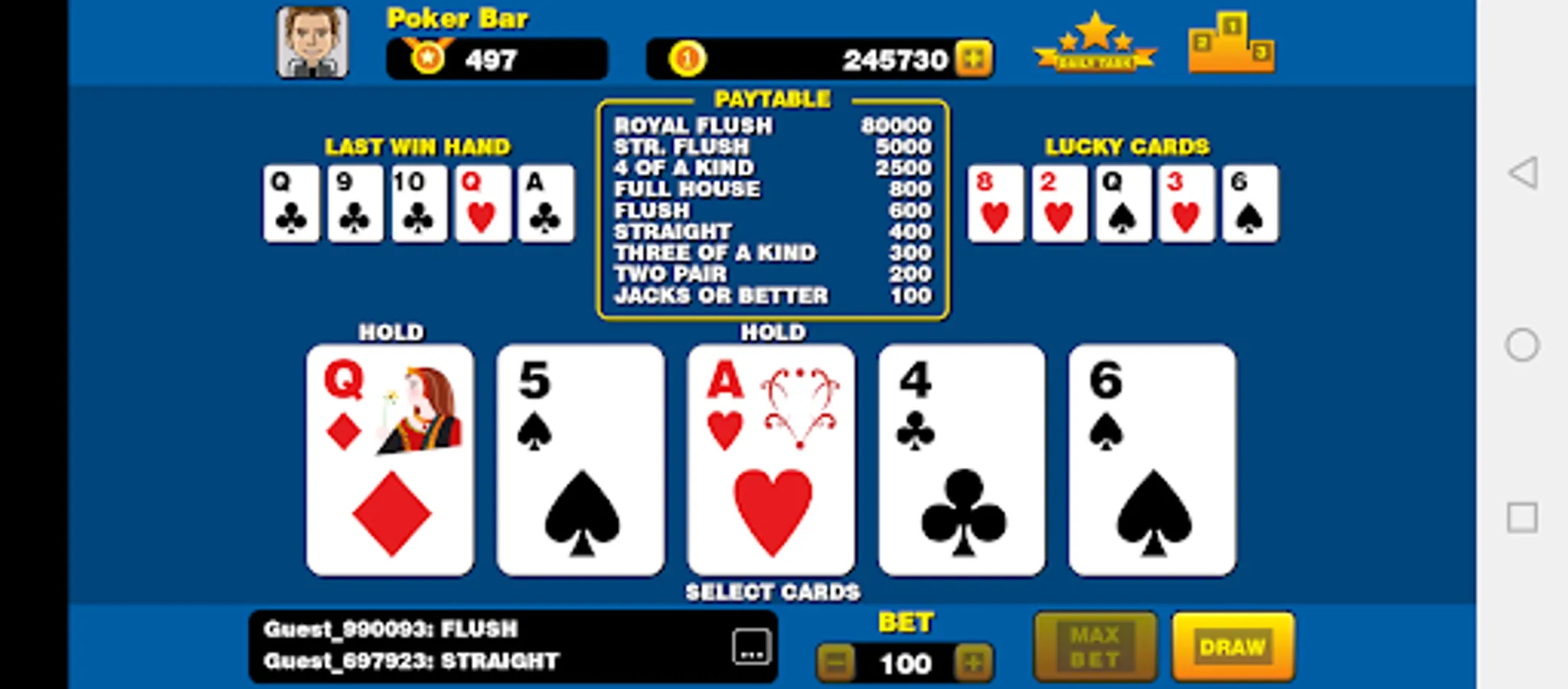 Unique Video Poker slot machine with bonuses "Lucky cards"
