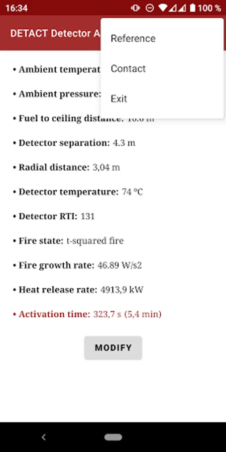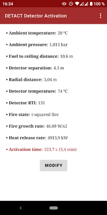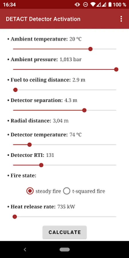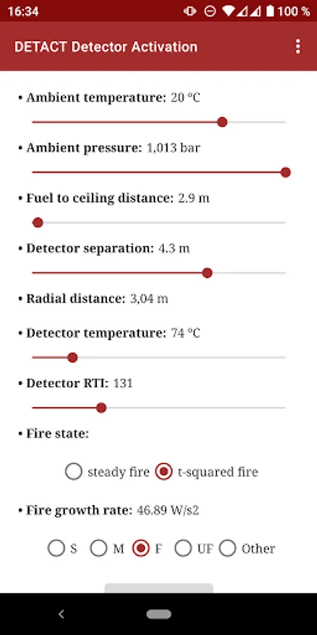 DETACT solves the equations reported by Evans and Stroup 1985. The app predicts the actuation time of fixed temperature heat detectors and sprinkler heads subject to a user specified fire (steady or t-squared). The outputs are the time to device activation and the heat release rate at activation.