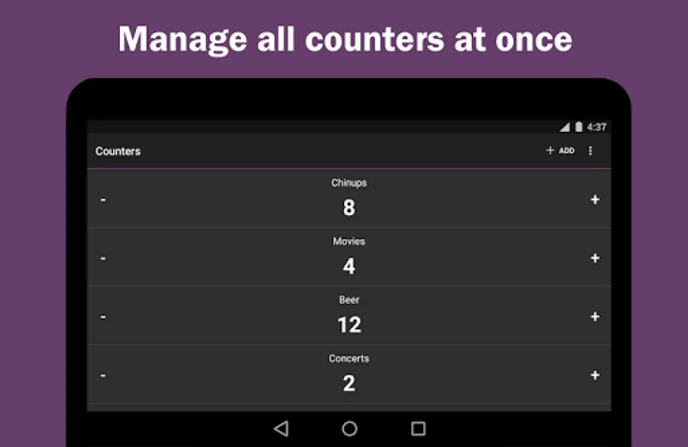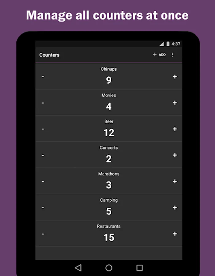 • Add, edit, reset and delete counters