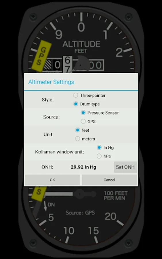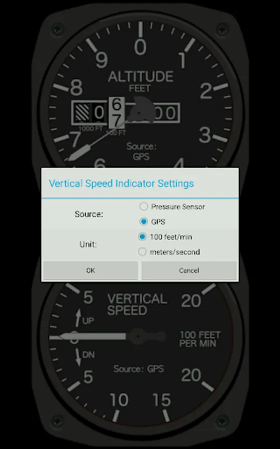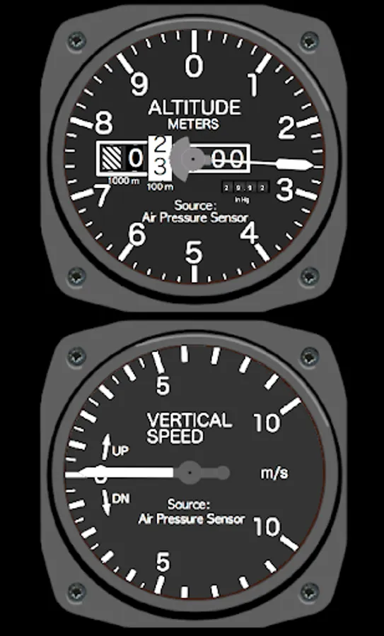 NOTE: Try the demo version of the Android Cockpit app first BEFORE buying this app. That app includes the Altimeter and Vertical Speed instrument and can be used to find out if your device has the necessary sensors and the app works to your satisfaction.