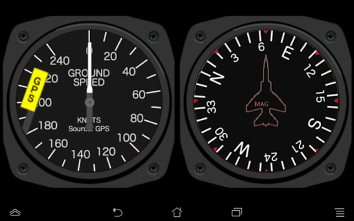 The Aircraft Cockpit app recreates the six main flight instruments (the six-pack) that you find in the majority of past and present airplanes: Speed Indicator, Attitude Indicator, Altimeter, Turn Coordinator, Heading Indicator and Vertical Speed Indicator.
