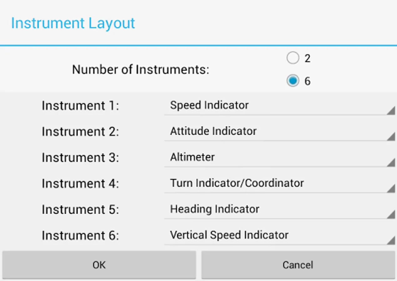 For some of the instruments, alternative sensors can be selected (for example the Altimeter can derive the current altitude either from the GPS or from the air pressure).
