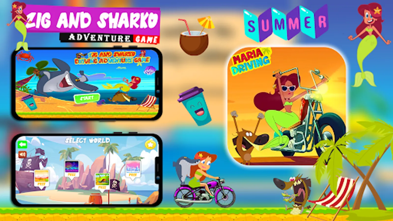 Zig and Sharko Driving is an amazing game for all ages it is enjoyable and beneficial game, about racing and driving beatiful motocycle.