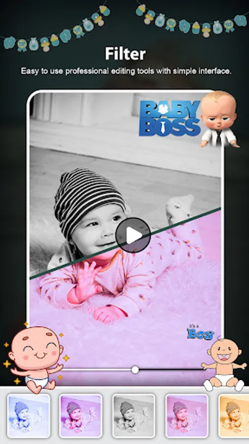 Capture every stage of your baby's development and make a video story. Baby Photo Editor is the best baby story camera, pregnancy photo app, baby pics app and baby photo app to add baby stickers on photo!