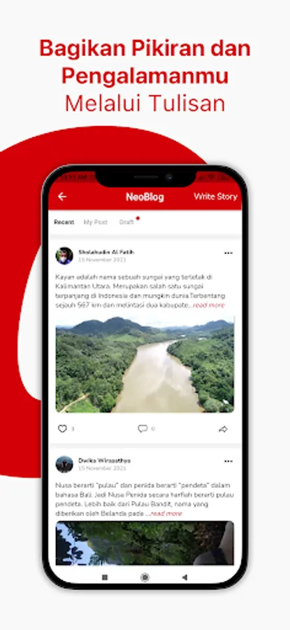 Setiap pengguna Borneopedia dapat menuliskan apa saja khususnya terkait Kalimantan, baik informasi maupun opini di NEOBLOG. Anda juga dapat memperkaya tulisan dengan foto atau gambar bahkan video. Borneopedia menyediakan ruang yang cukup bagi Anda dalam berekspresi. Setiap tulisan Anda akan dilihat oleh pengguna lain Borneopedia, khususnya antar anggota yang sudah saling mengikuti (follow). NEOBLOG menjadi sarana interaksi sosial (pertemanan – networking) antar pengguna Borneopedia. Kami yakin, ‘orang’ Kalimantan dapat saling tersambung secara positif dalam menjalin persaudaraan dan pertemanan untuk masa depan yang lebih baik. Isu-isu tentang Kalimantan dapat dikupas dan dibahas secara berkualitas di Borneopedia.