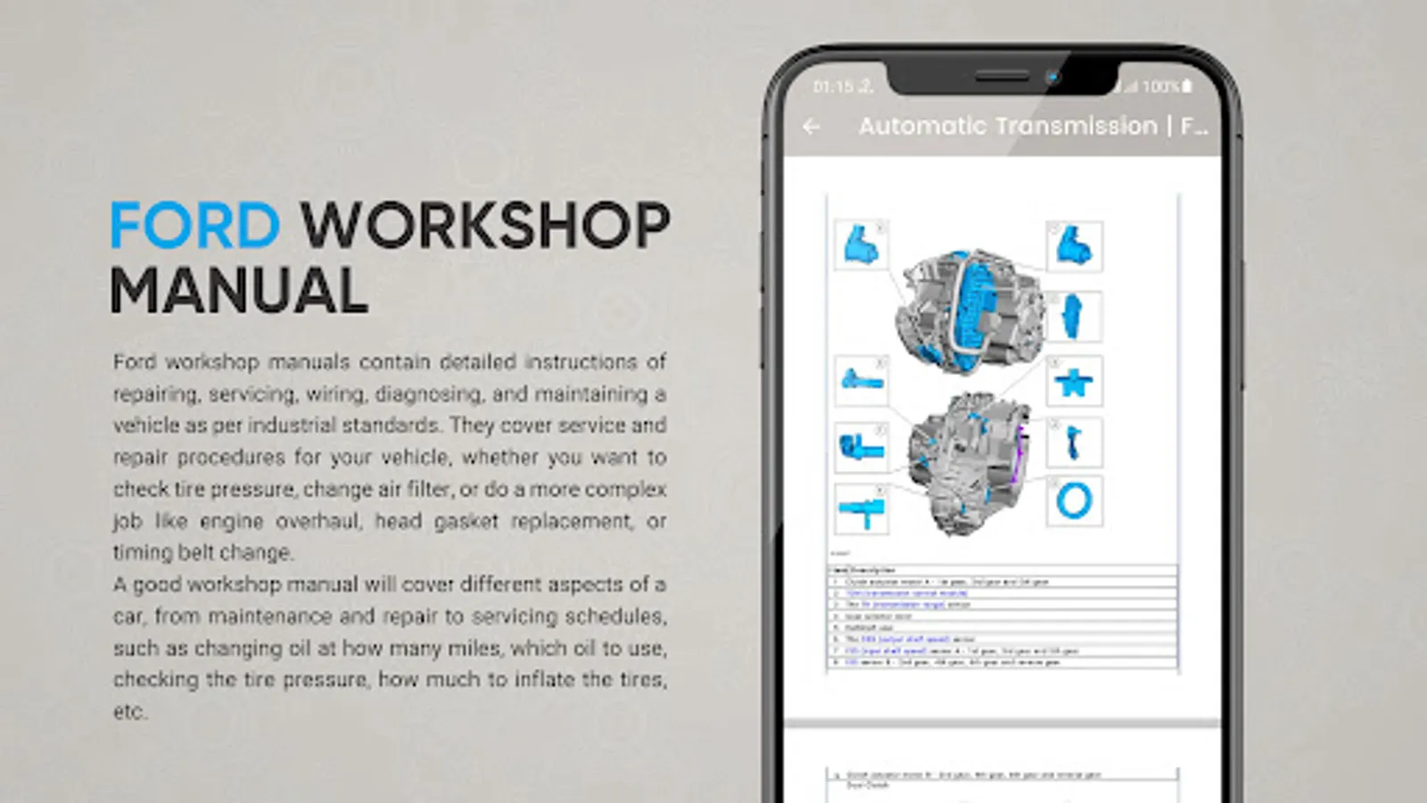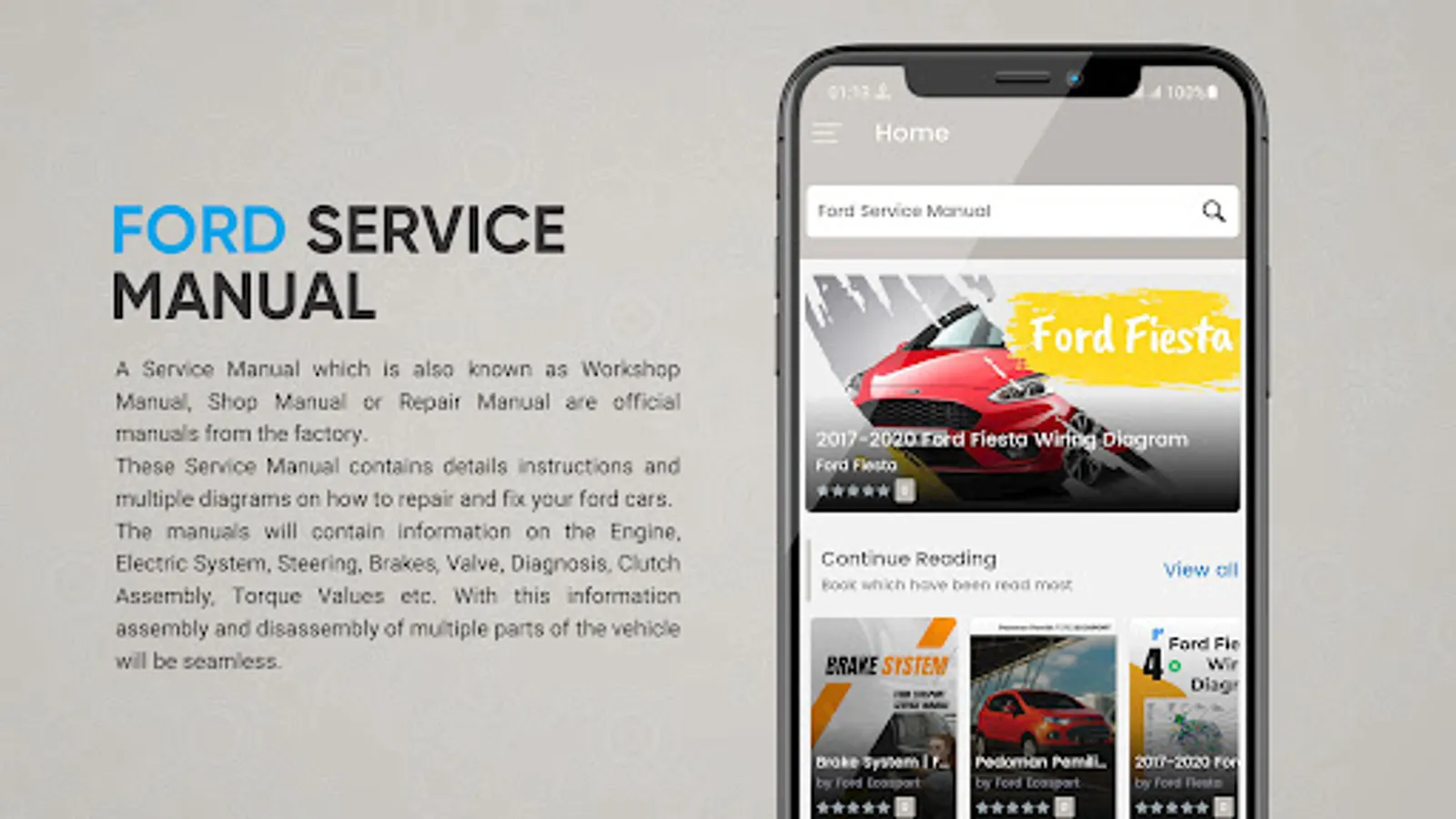 A Service Manual which is also known as Workshop Manual, Shop Manual or Repair Manual are official manuals from the factory. These Service Manual contains details instructions and multiple diagrams on how to repair and fix your ford cars (Ford Ecosport, Ford Fiesta, etc). The manuals will contain information on the Engine, Electric System, Steering, Brakes, Valve, Diagnosis, Clutch Assembly, Torque Values etc. With this information assembly and disassembly of multiple parts of the vehicle will be seamless.