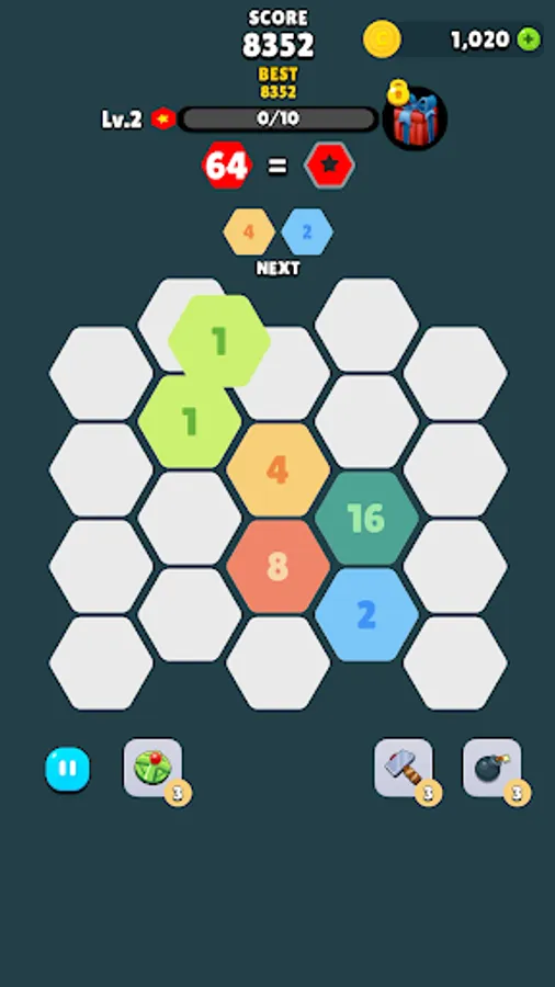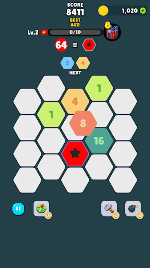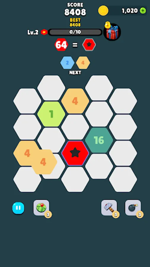 - Tap the hexagon block to move it to an empty space.
