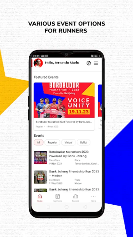 My Borobudur Marathon is an application that integrates all information about the Borobudur Marathon and provides various features; service membership registration, event participation registration, exercise activity tracker or running activity, advertising services from partners, and allows users to connect with several social media services.