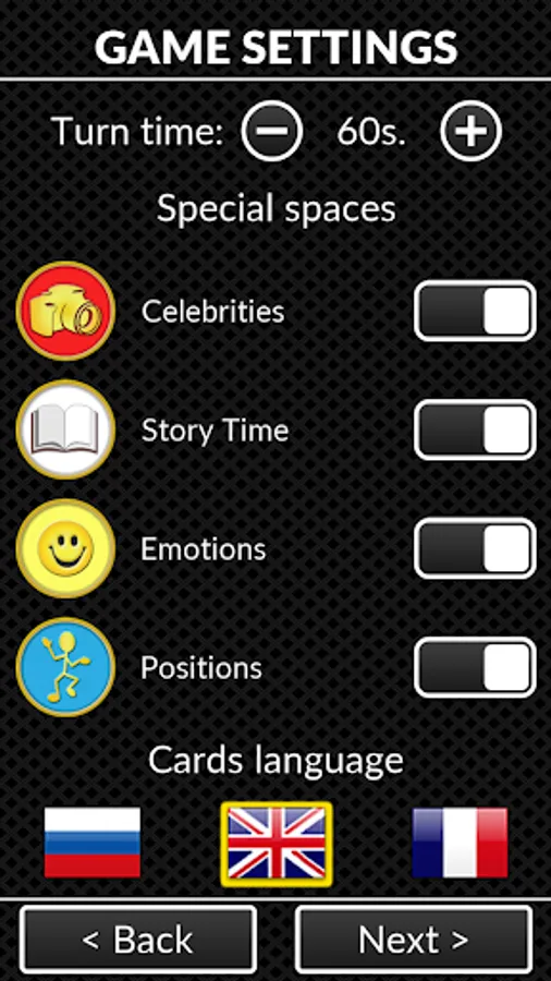 There is all features from the original card game and even more: many cards with selectable languages, adjustable round time, optional usage of special fields on game screen and much more!