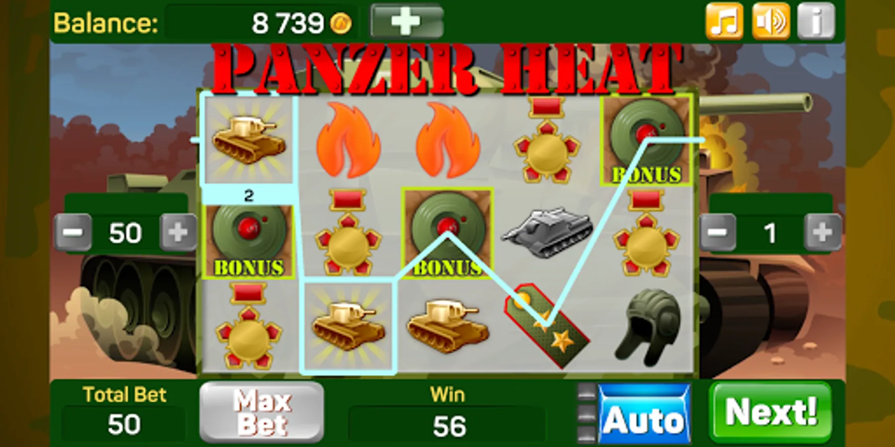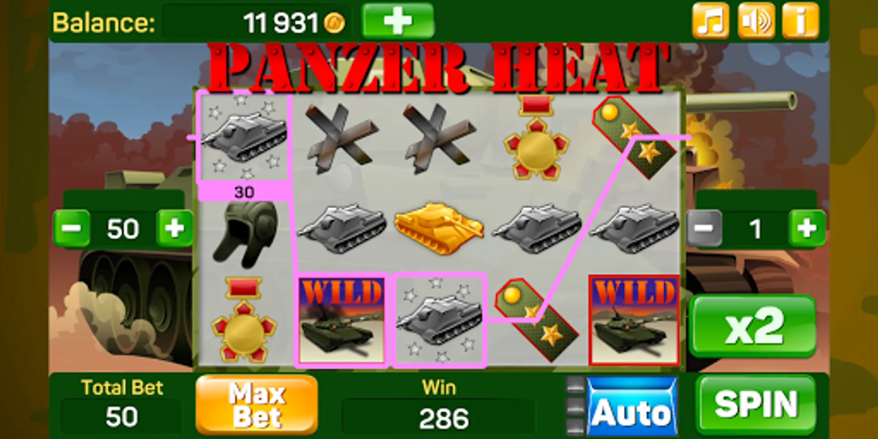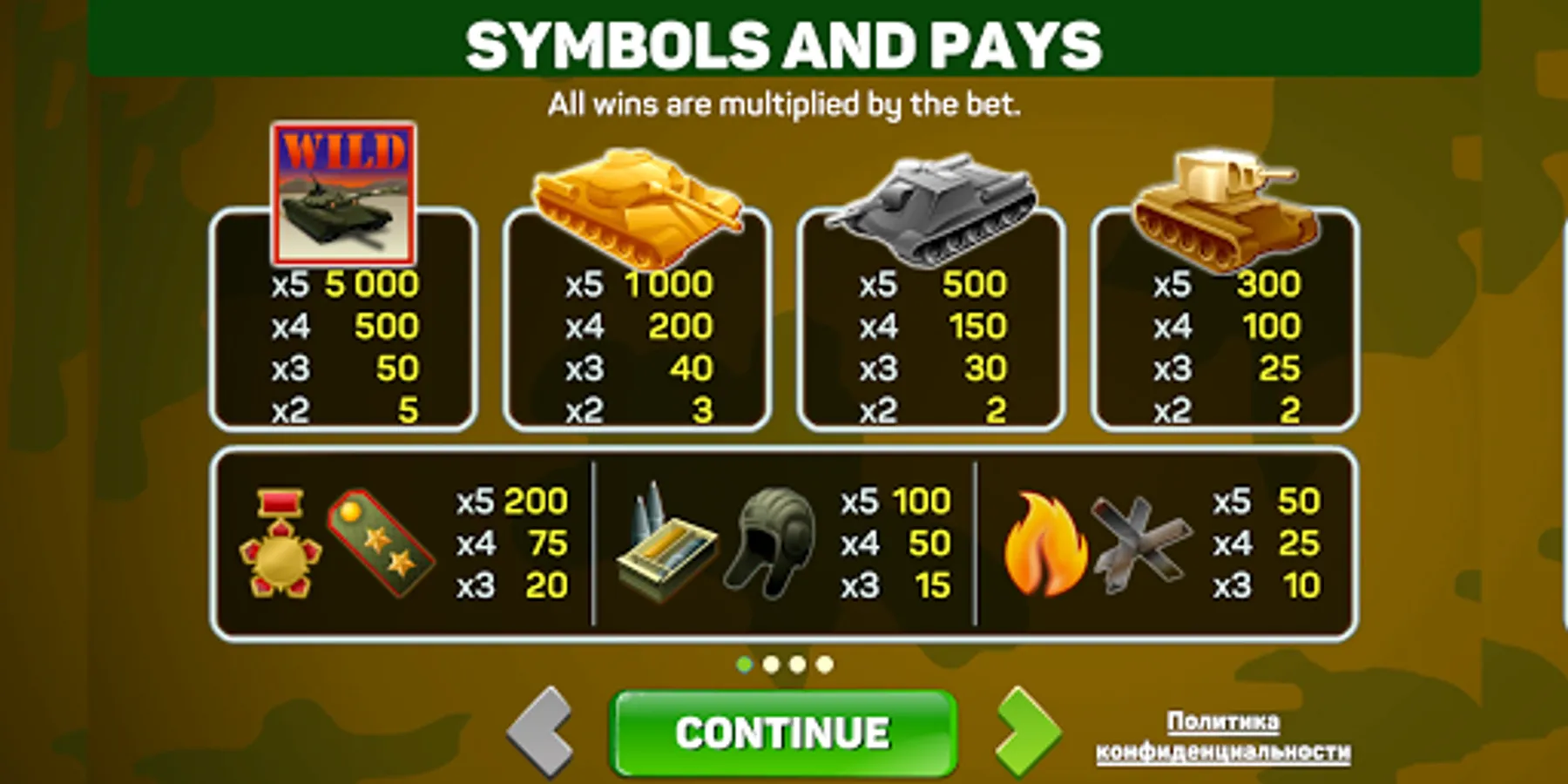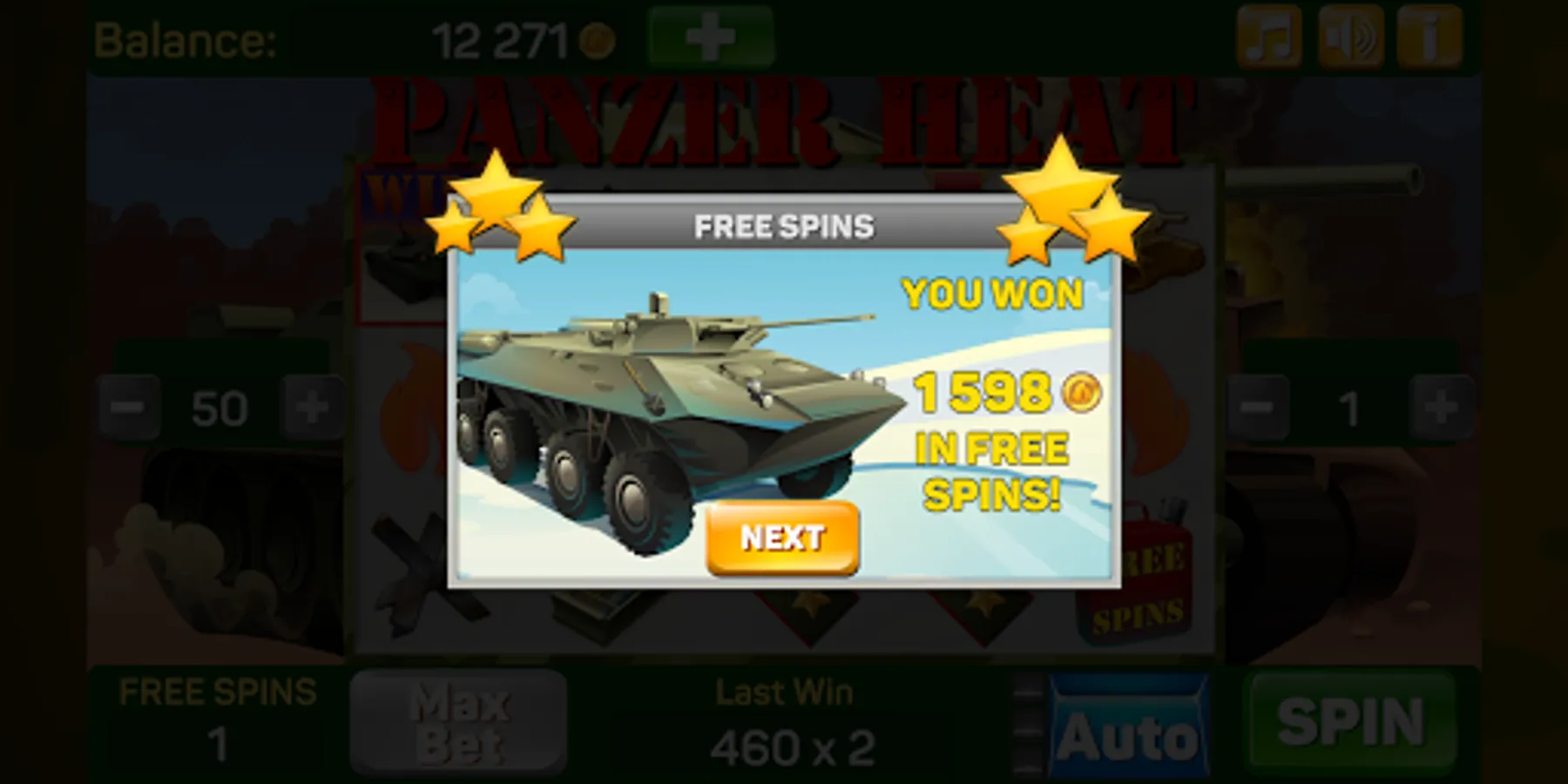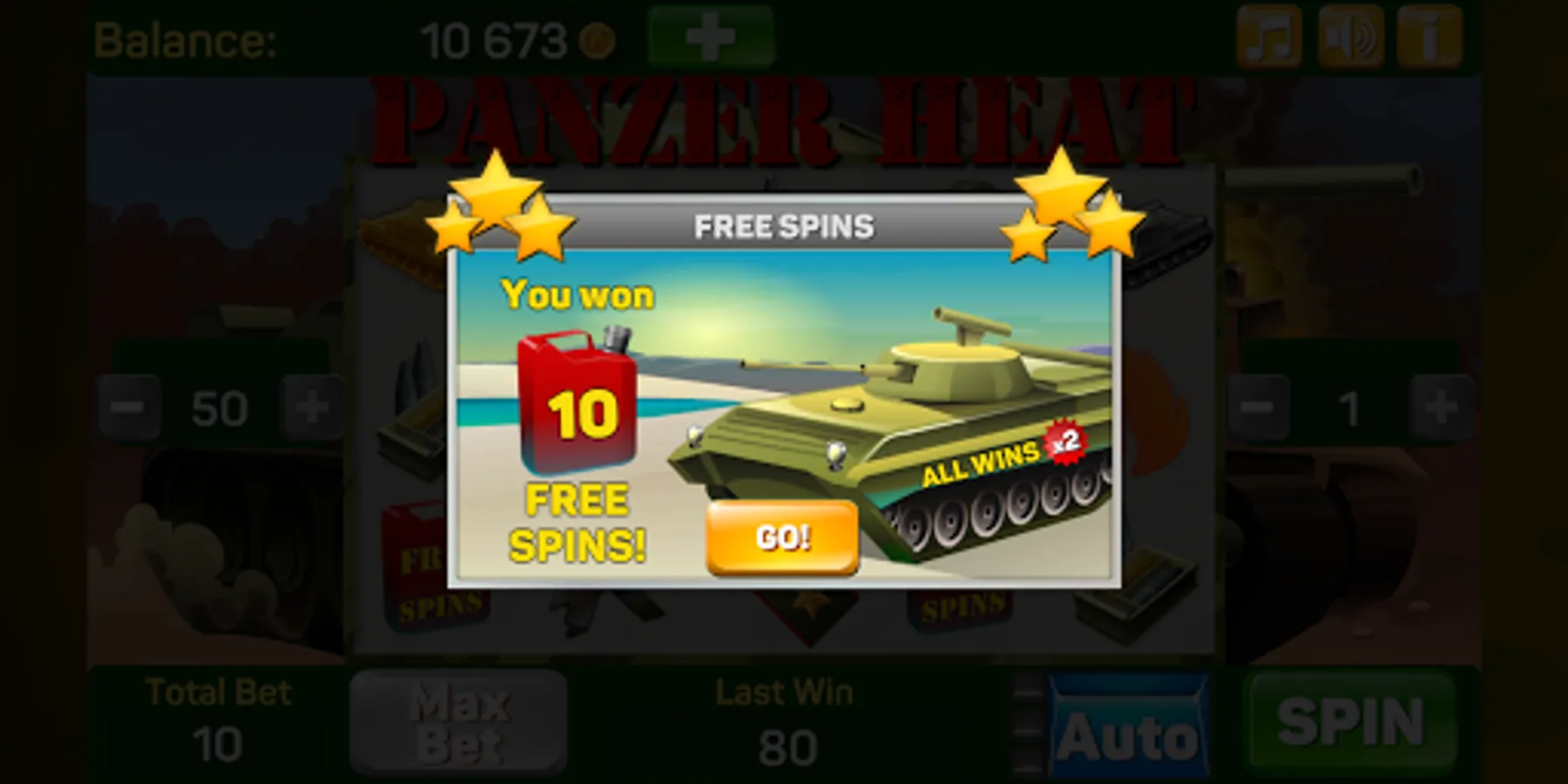 You have a chance to enjoy the excitement and big wins to the accompaniment of heavy guns and immerse yourself in the harsh tank atmosphere! Generous Free Spins which double all wins and explosive bonus game will not let you get bored!