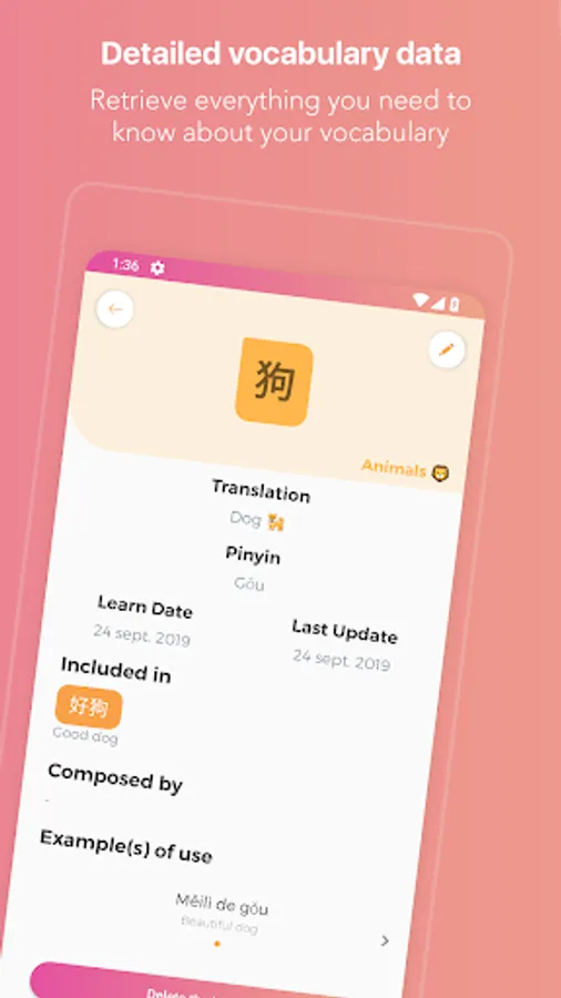 💈 Thanks to the Chinese Bridge app, you will be able to add vocabulary from different sources, a course, a book, a friend, whatever. You will be able to build your own Chinese dictionary that will perfectly suit your needs.