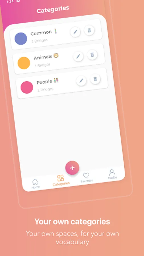 🗂 - ADDING CATEGORY: You can also add categories, visually recognizable thanks to colors, to easily group your vocabulary by theme.