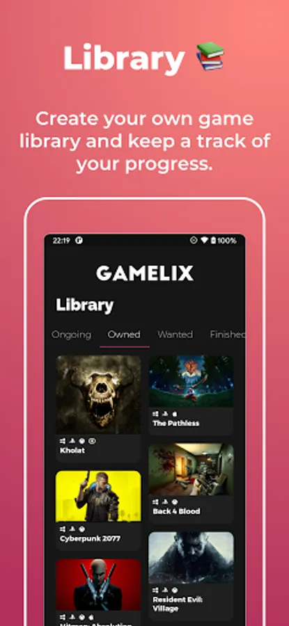 📚 - Manage your library and keep track of the games you're playing or you want.