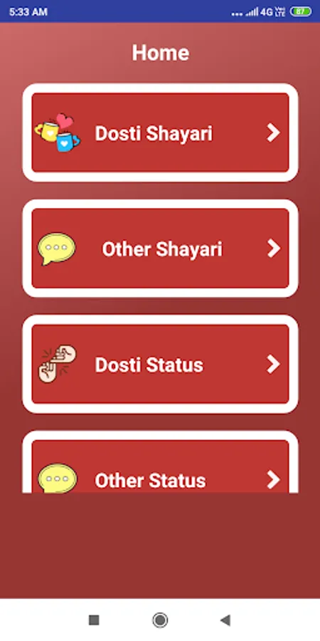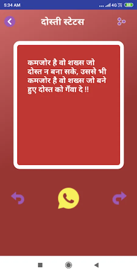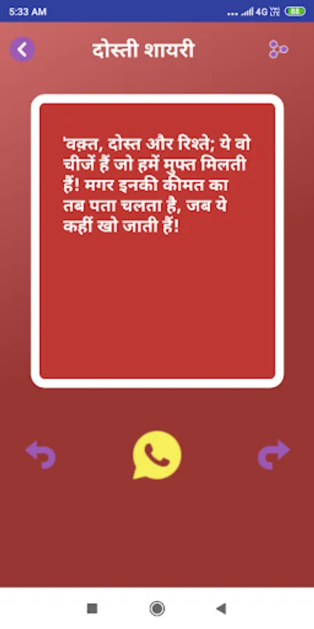 This app brings you the best collection of dosti shayari & shayari on friendship. Beautiful hindi shayari for friends . These friendship shayari can be sent as an SMS to mobile.