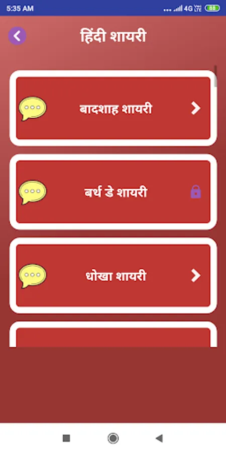 This App contains new shayaris in the market. Our developers works hard to update database so that you can have new shayaris and quotes in the market.app is totally offline so that users can use it without internet.users are provided share and copy facility.hope you like our work.