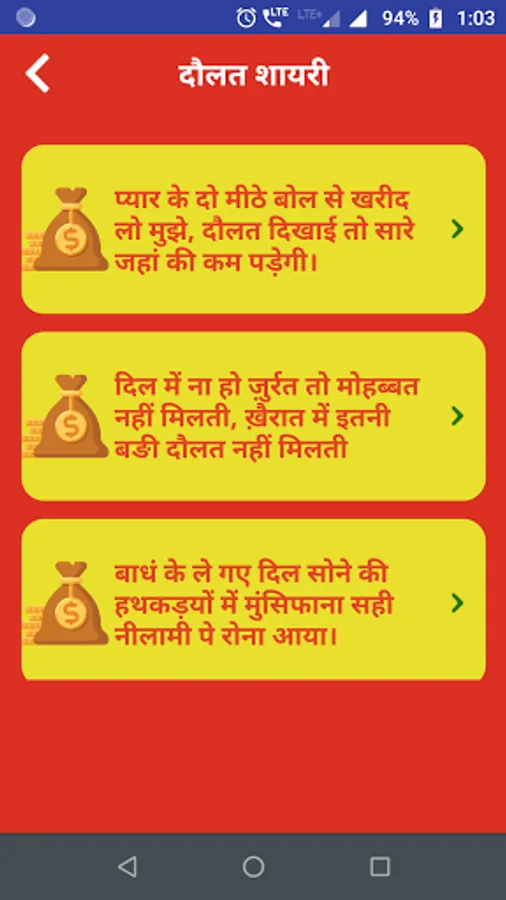 This app contains Largest Collection of Daulat shayari & shoharat Status.