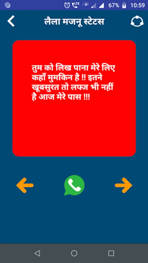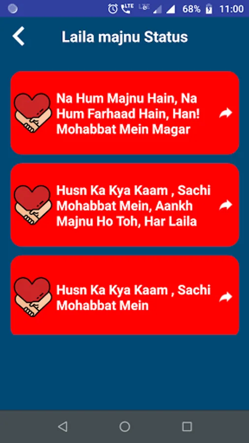 This is one of the best collection of latest Laila Majnu shayari app which is totally free and no internet connection required . Lover is one of the important part of human life for share there feelings to some we must need a proper text which is attached by our emotion for that this is best and suitable app for you just use and share ultimate feelings .