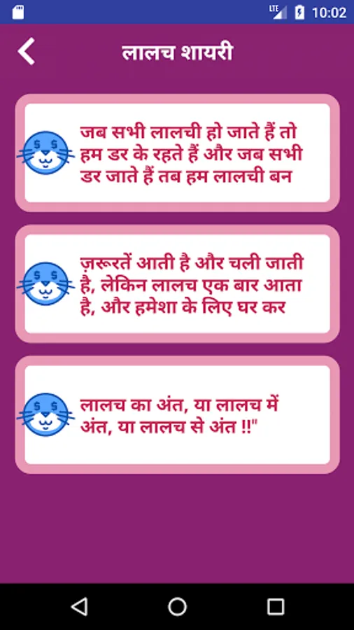 This is one of the best collection of latest Lalach shayari app which is totally free and no internet connection required . Greed is one of the important part of human life for desire for more food, money, power, etc. than you really need.
