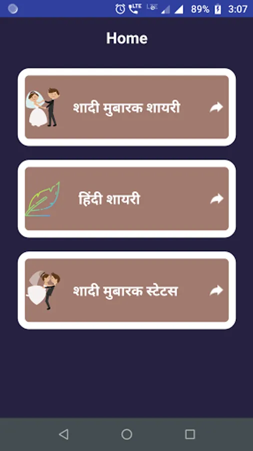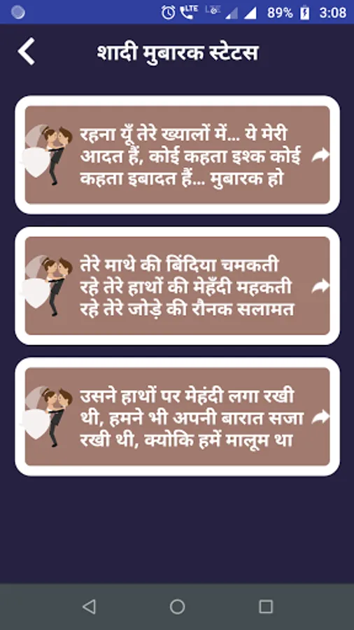 This app contains Hindi Shadi Mubarak Shayari & Subh Vivah Status Collection