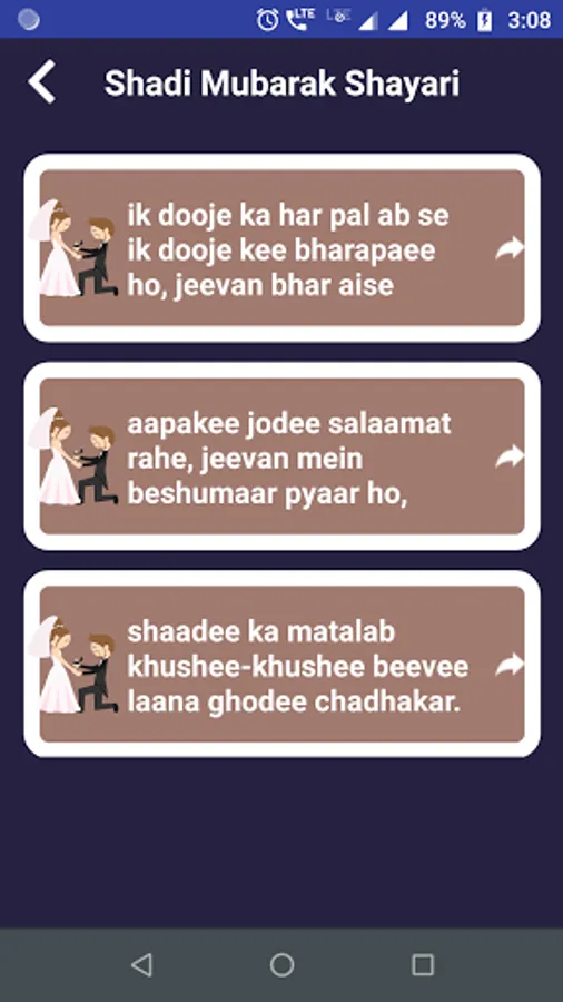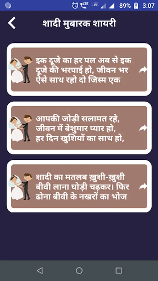 - One touch next previous view for read Marriage shayari