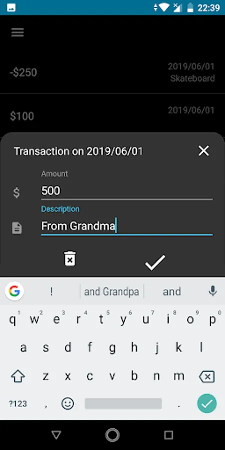 The app will keep a log of all you goals and transactions and it is a very simple and fun way to keep track of your savings and goals!