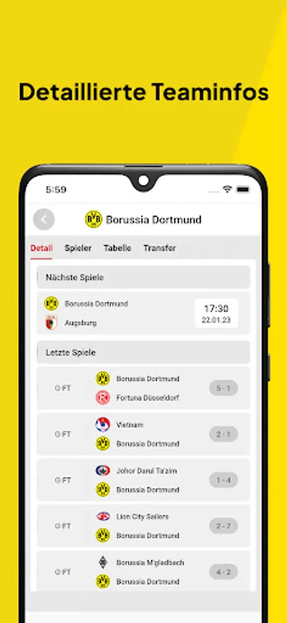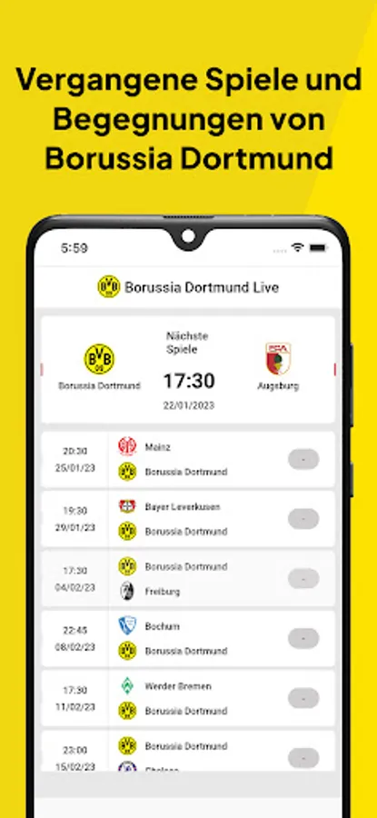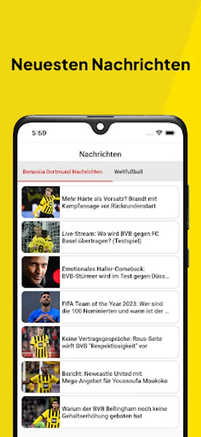Follow your favorite team with instant updates with Borussia Dortmund Fan.