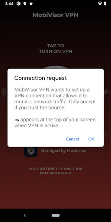 MobiVisor VPN, is used to establish a VPN connection with the Enterprise VPN server.