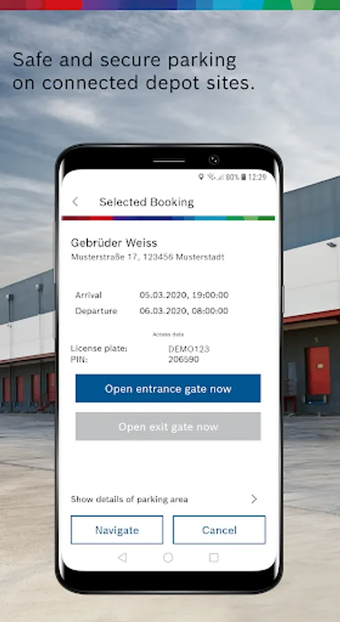 Dispatchers and drivers can reserve these parking lots via our app and are able to view their bookings. When the driver arrived at the area, he can also open the gate by using the app. If the driver has no reservation, but he needs a place to rest, he can book a parking space for the day or the night with our brand new feature “Park Now”. This feature allows to enter and exit the security area and the parking will be added to the monthly invoice.