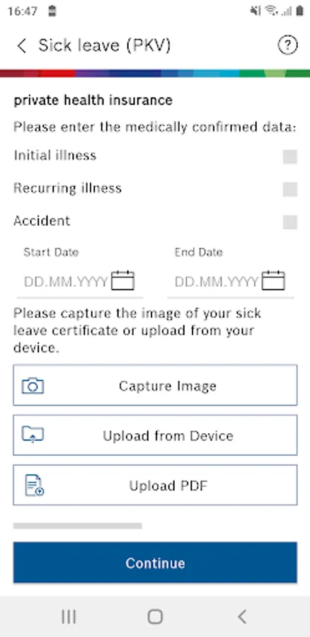The app makes it possible to transmit the length of incapacity to work to the company using the available private devices / company devices.