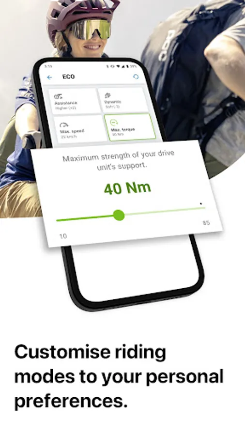With the eBike Flow app, you can adjust the ECO, TOUR, SPORT and TURBO riding modes to perfectly suit you. For example, increase support in TOUR mode or reduce power consumption in TURBO - anything is possible. Make it your eBike.