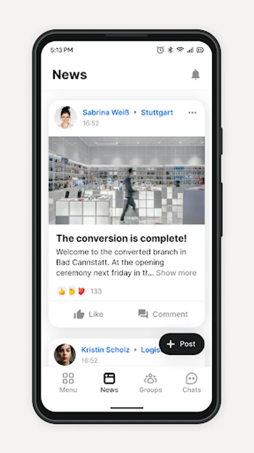 Stay informed about all internal developments and announcements relevant to you through a personalized newsfeed.