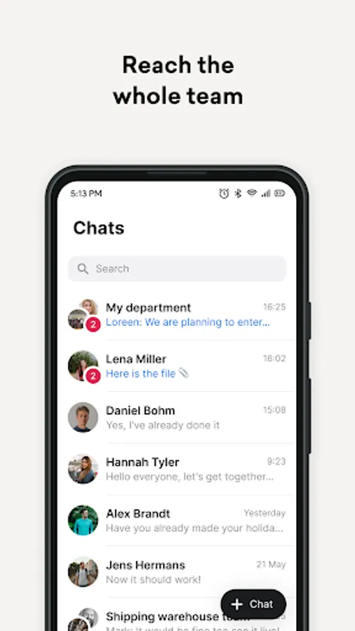 Use the chat to exchange and coordinate with one or more employees of your company.