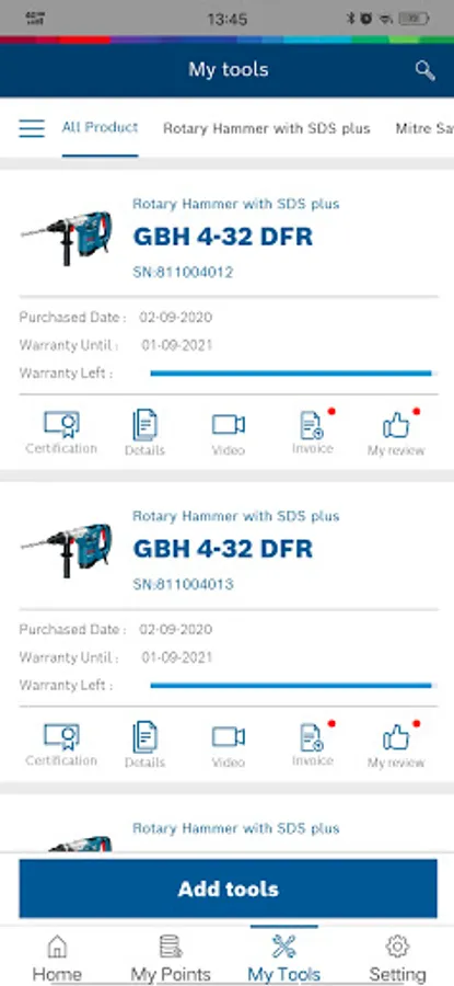 - Tools catalogue for easy access of all the Bosch tools listing in the market