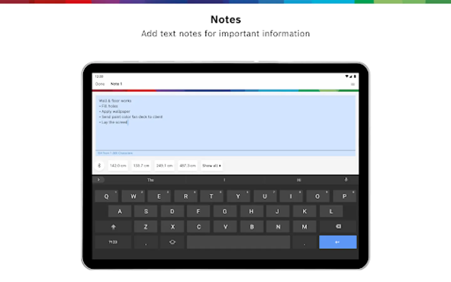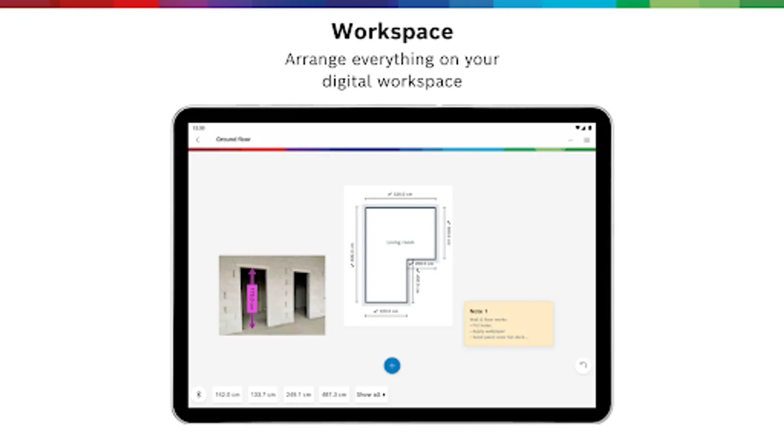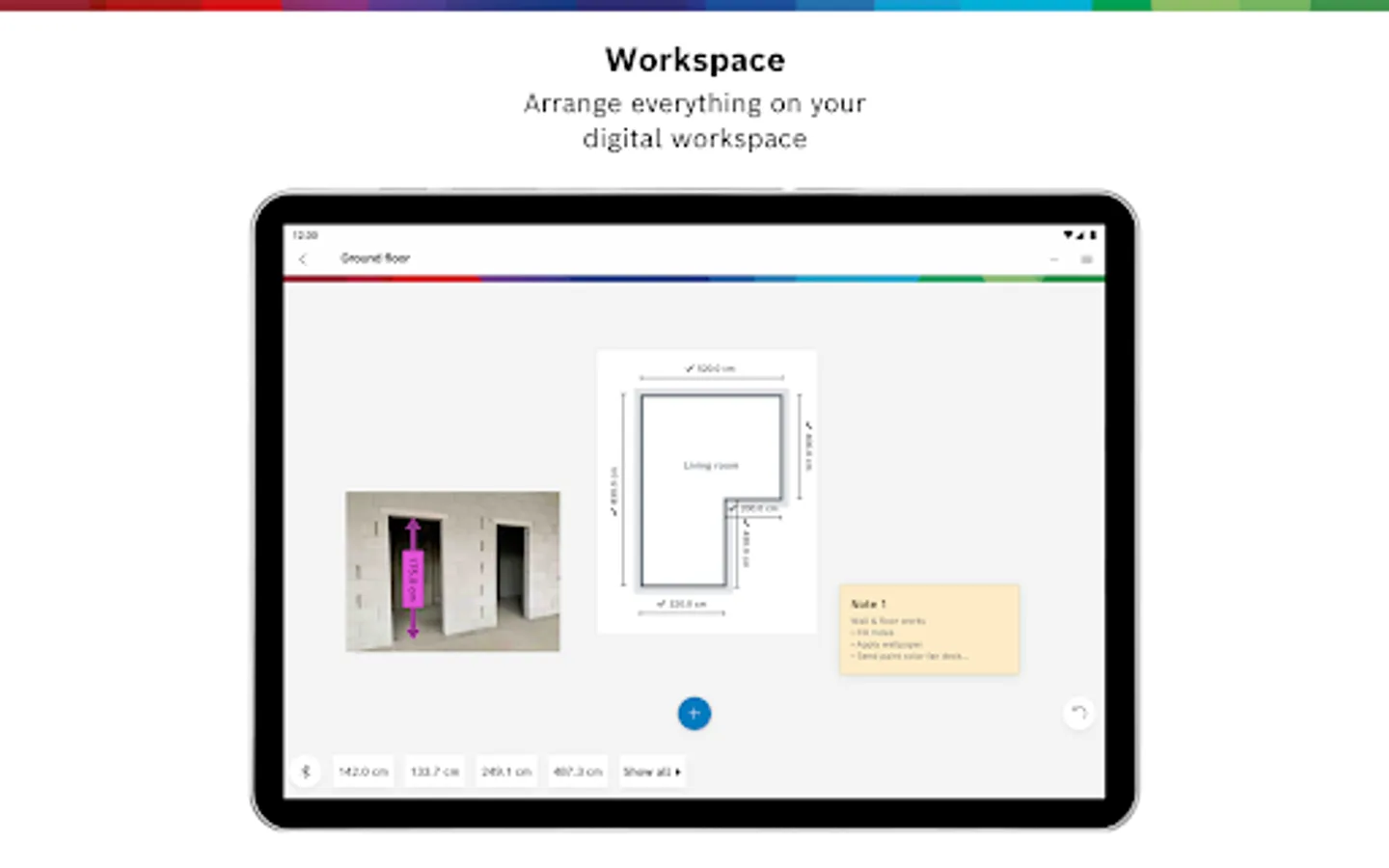 - Add floor plans as individual rooms, photos, and notes to your workspace