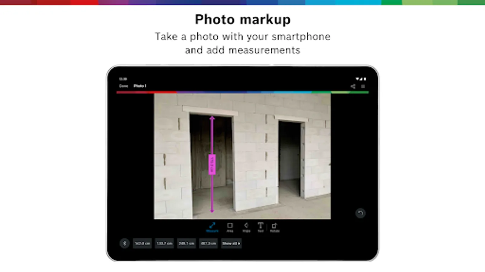 - DOCUMENT ON THE JOBSITE: Use your laser range finder and your smart device to capture measurements instantly and insert them error-free into the app.