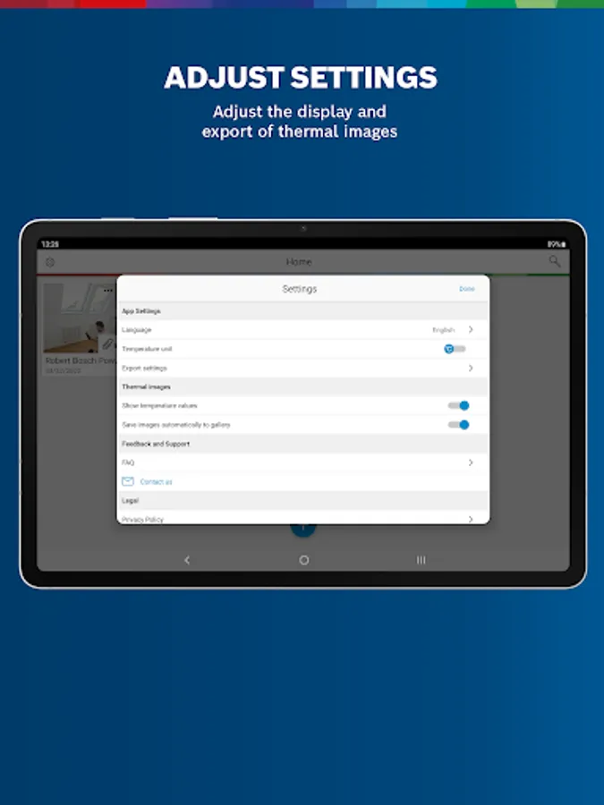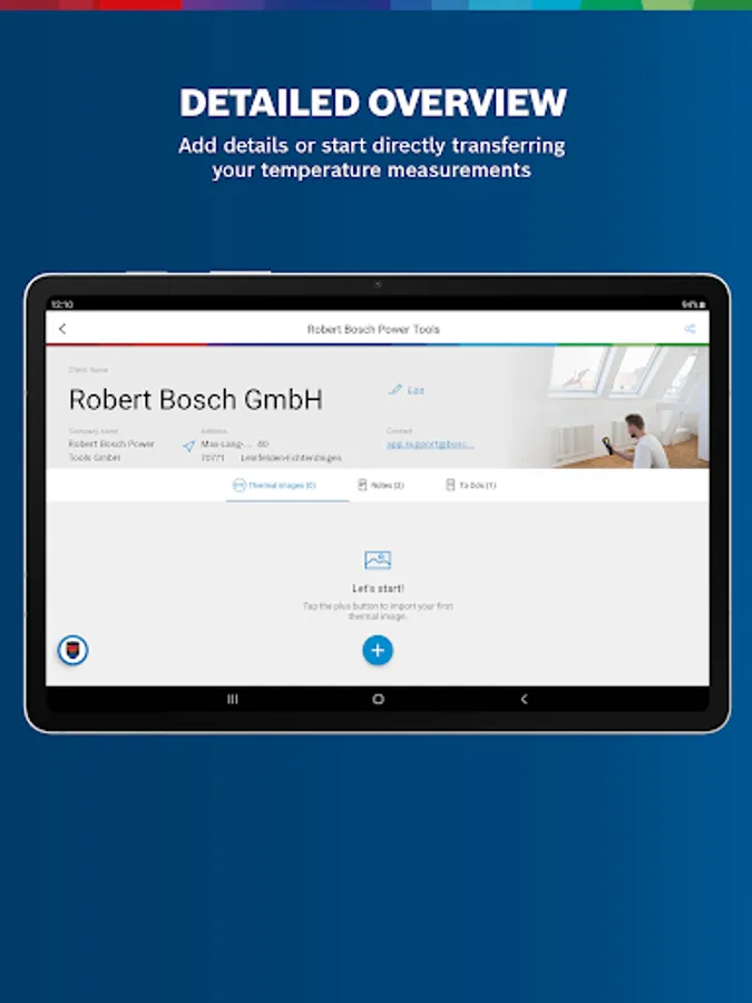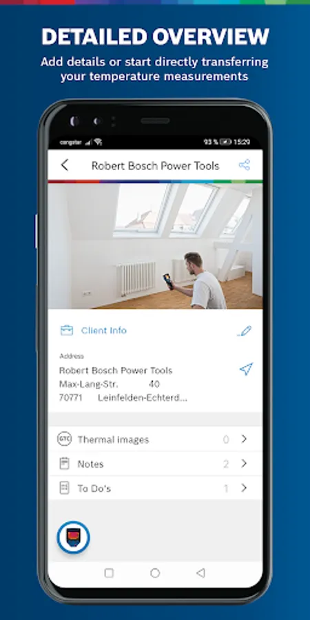 The app is ideal for all professional tradespeople who use Bosch temperature measuring devices. Whether electricians, heating engineers or window installers – all benefit from the extensive functions of the app. The Bosch Thermal Connect app provides the best assistance for your everyday work.
