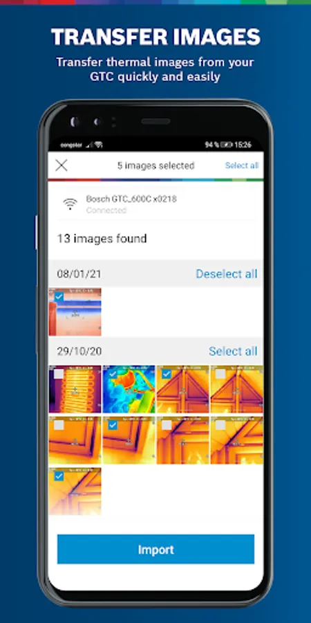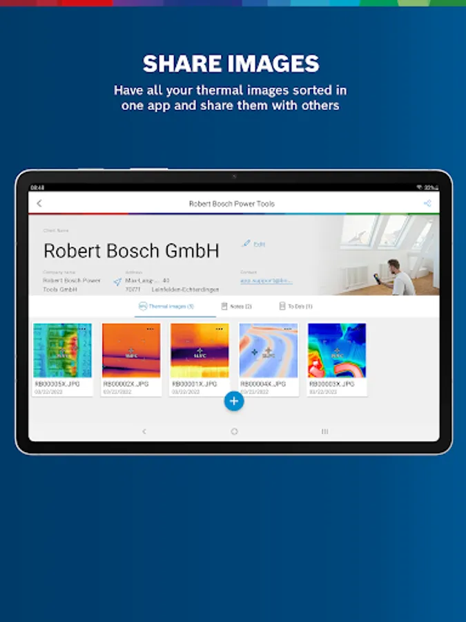 Increase productivity and become highly efficient with the Bosch Thermal Connect app! You can quickly document and exchange thermal images, real images and measured values directly on site.